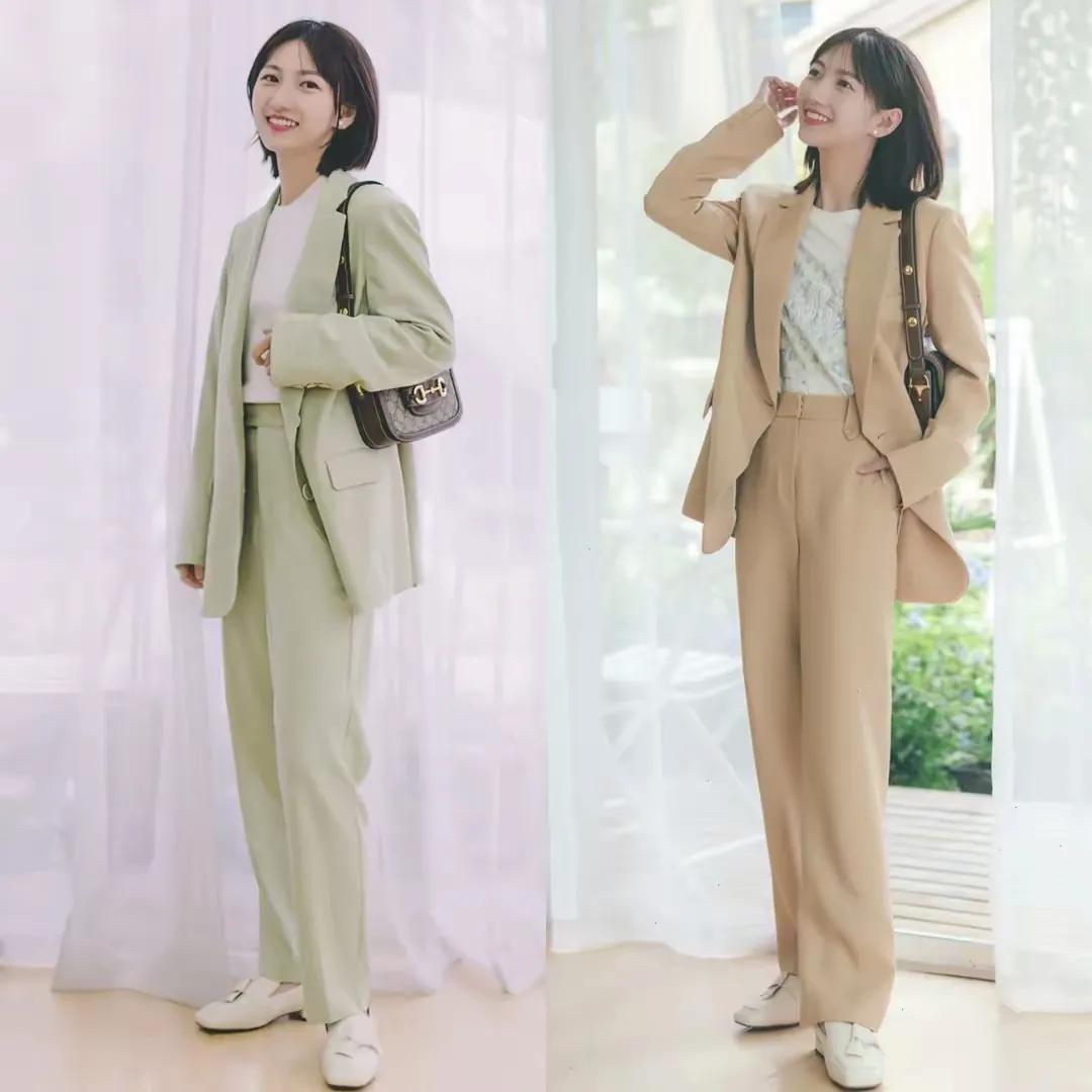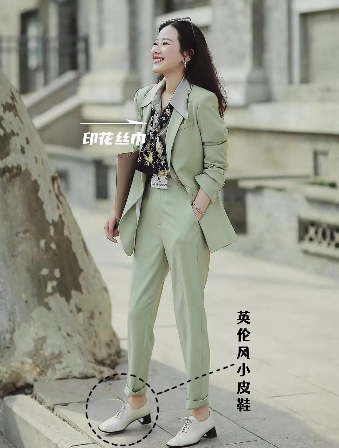 如果你是职场女性,确实推荐大家选择西装裤来搭配,西装裤面料挺括有型,如果腿型不是那么修长笔直的情况下,选择西装裤来搭配确实不错 。