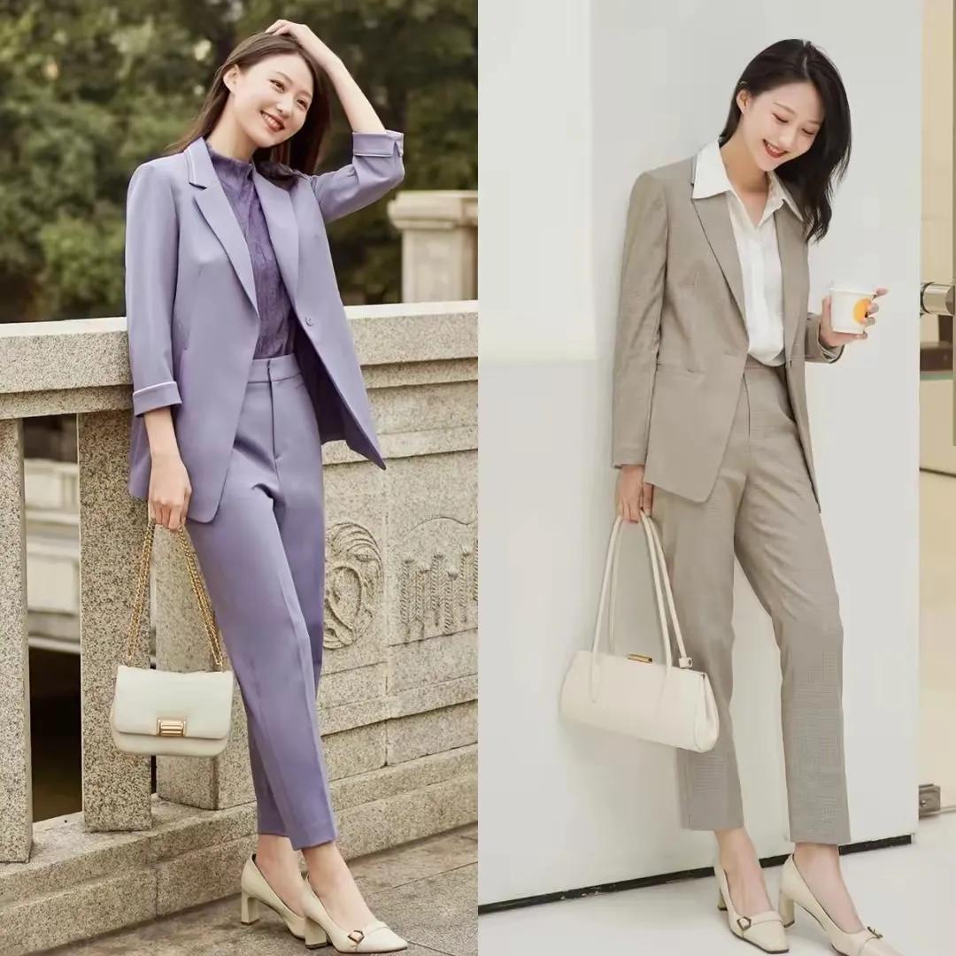 对于职场女性来说,我们多学一些能够展现自己气场的衣服单品最佳,例如上面这2套西服套装,衣服的面料挺括有型,鞋子选择的是低跟的前后羊皮材质,或者是牛皮材质的单鞋,这样的穿搭不光很大气,而且很修饰身材,谁能拒绝的了?这样的搭配,以上这些穿法,如果你也喜欢 赶紧行动起来。